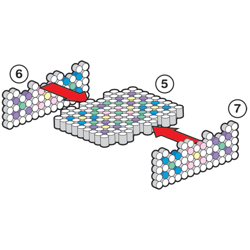 Download the PDF for the 3D Dollhouse Bed and Shelf Project Pattern. You will use the large square pegboard for your project. If you're using a clear pegboard, slide the actual-size pattern underneath it. Place all the beads for the design.
