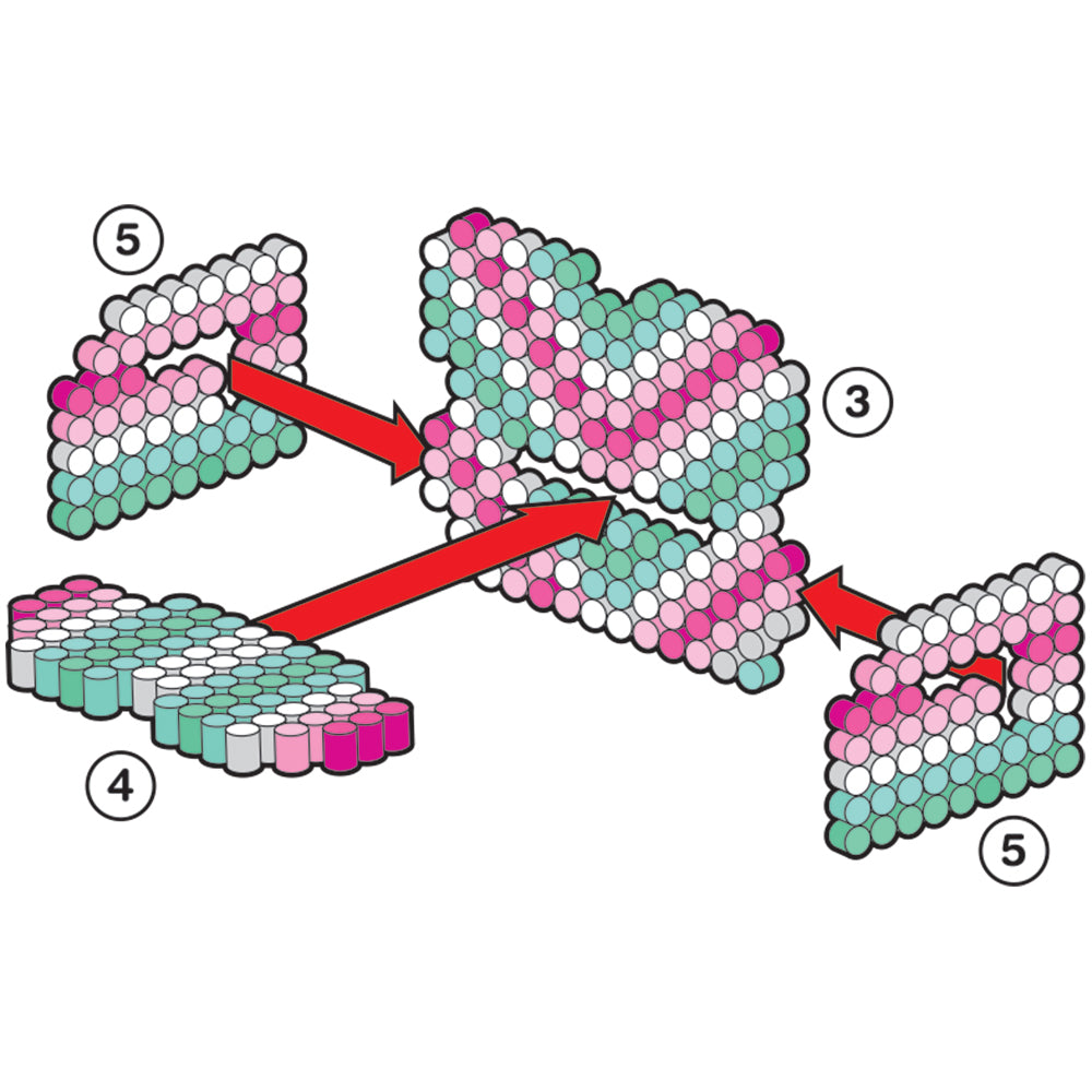 Download the PDF for the 3D Dollhouse Sofa and Table Project Pattern. You will use the large square pegboard for your project. If you're using a clear pegboard, slide the actual-size pattern underneath it. Place all the beads for the design.