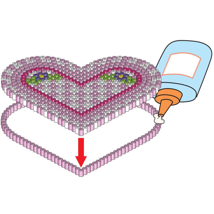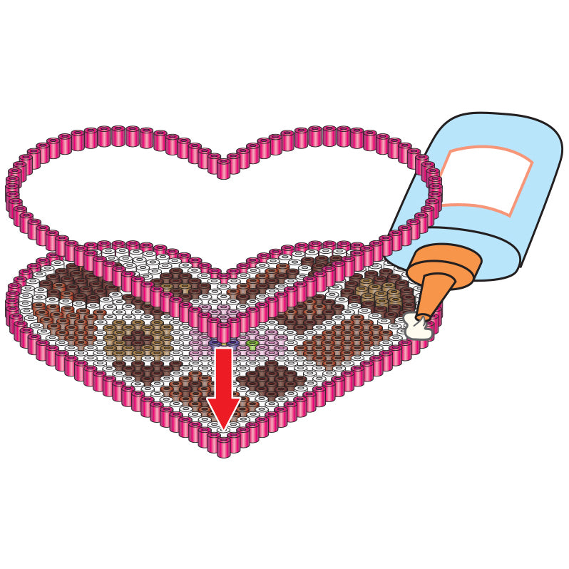 Download the Box of Chocolates Project Pattern. You will use the large heart pegboard to create your project. If you are using a clear pegboard, slide the actual-size pattern underneath it. Place your beads following the pattern.