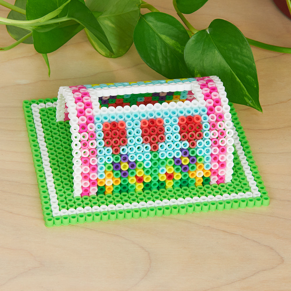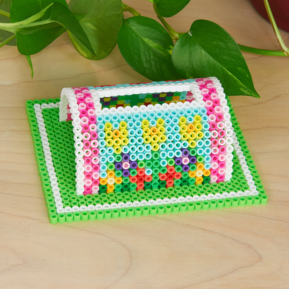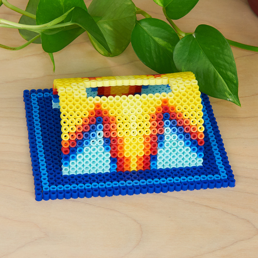 Remove the paper and bead design from the pegboard. Flip the design over to expose the non-fused side. Repeat the fusing. Let cool completely. When the design is cool, peel off the ironing paper. Your pegboards and ironing paper are reusable.