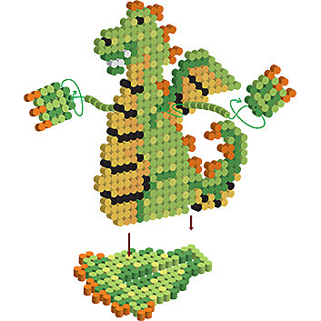 Download the PDF for the Friendly Dragon Project Pattern. You will use the large square pegboard to create your project. If you are using a clear pegboard, slide the actual-size pattern underneath it. Place your beads following the pattern.