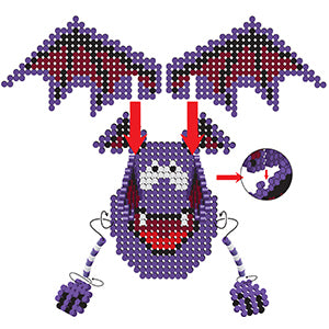 ASSEMBLY: On the back of the bat's head, insert the small wings into the slots under the eyes.
