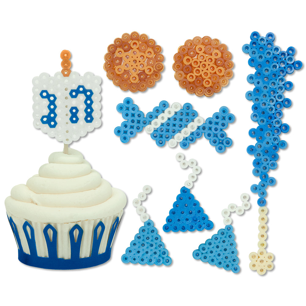 Download the PDF for the Hanukkah Fun Project Pattern. You will use the large hexagon, small square, and small circle pegboards to create your projects. If you are using a clear pegboard, slide the actual-size pattern underneath it. Place your beads following the pattern.