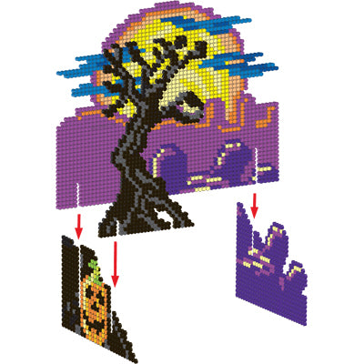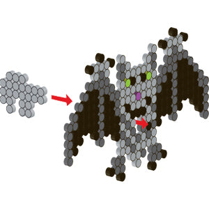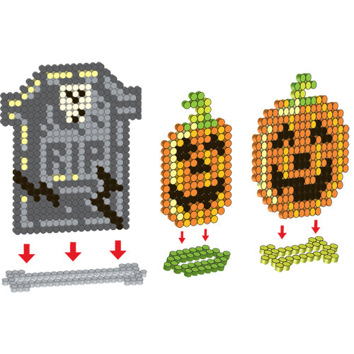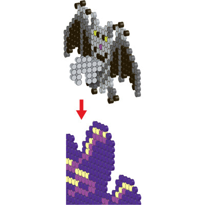 Download the PDF for the Midnight Graveyard Project Pattern. You will need 4 large square pegboards for your projectŃassemble the boards in a square. Cut out the individual pattern quadrants and tape them together so that you can see the whole design at once. If you're using clear pegboards, slide the actual-size pattern underneath them. Now place the beads for your project.