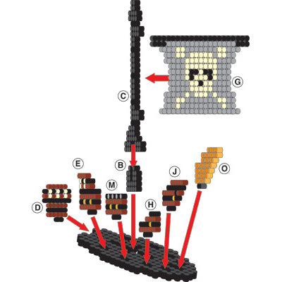 Download the PDF for the Pirate Ship and Treasure Chest Project Pattern. You will use the large square pegboard to create your projects. If you are using a clear pegboard, slide the actual-size pattern underneath it. Place your beads following the pattern.