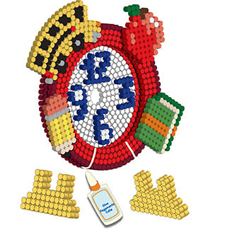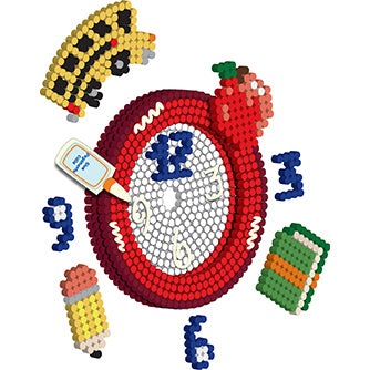 Download the PDF for the School Time Project Pattern. You will use the large circle and a small square pegboard to create your clock. If you are using a clear pegboard, slide the actual-size pattern underneath it. Place your beads following the pattern.