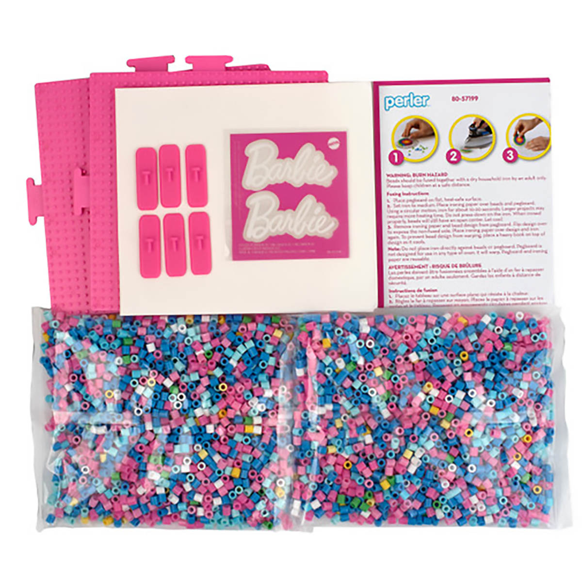 Gather your friends to create some iconic Barbie™ designs with this fuse bead activity kit! Patterns included to make a Barbie™ house, car, van, sunglasses, and more—9 projects in all. Kit includes 6 plastic stands for displaying your creations as well as two Barbie™ stickers to use as accents. This activity kit makes a great gift for any Barbie fan. Kit contains 4000 beads, 2 pegboards (large interlocking squares), 6 display stands, sticker sheet, pattern sheet with instructions, and ironing paper. BARBIE™ and associated trademarks and trade dress are owned by and used under license from Mattel. ©2024 Mattel.
