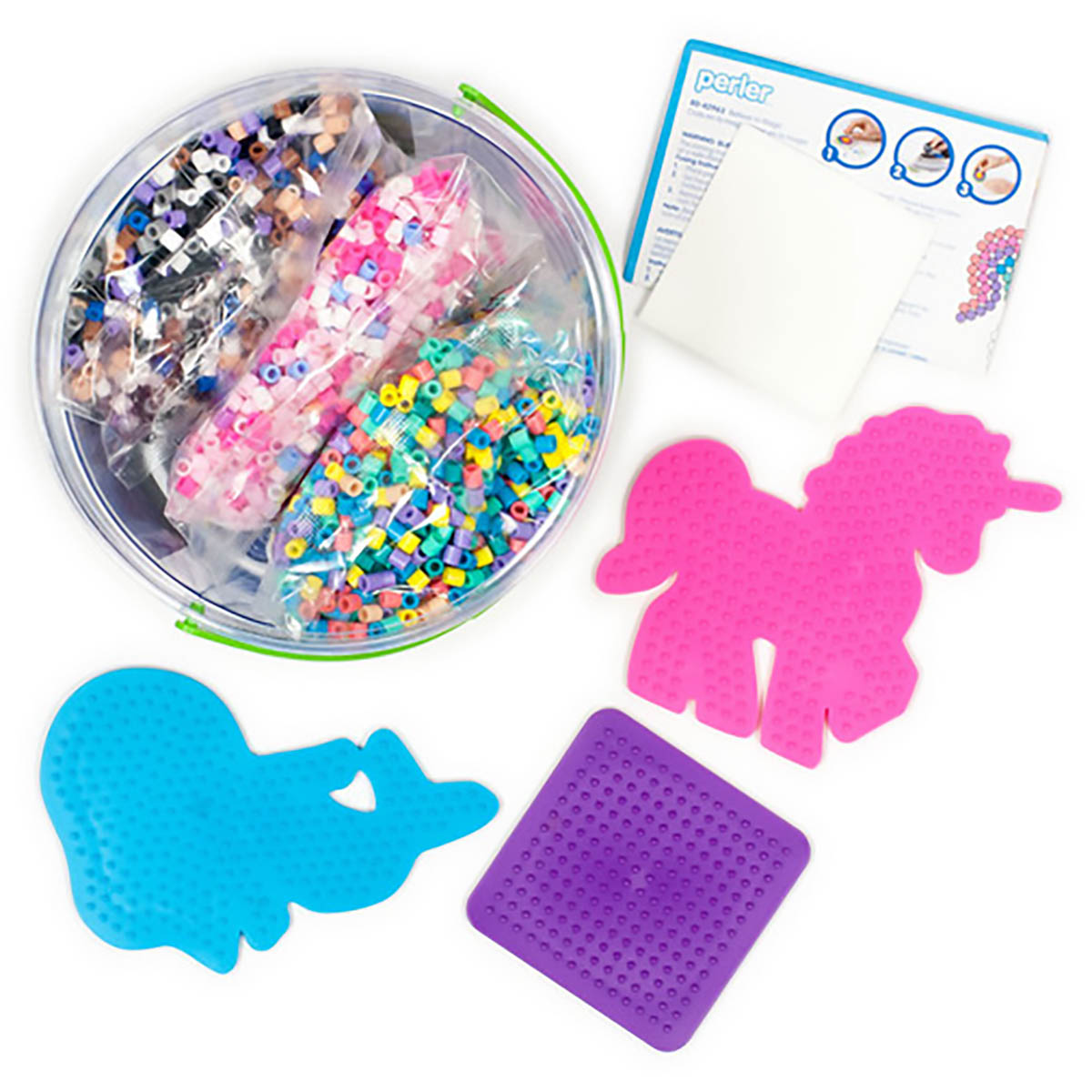 This fuse bead activity kit will provide hours of creative fun. Patterns included to make 13 different designs, including mermaids, unicorns, and more. And there's plenty of beads to make your own magical designs! Designed for ages 6 and up. Kit contains 8500 beads, 3 pegboards (small square, unicorn, and mermaid), pattern sheet with instructions, and ironing paper. Pegboards and ironing paper are reusable.