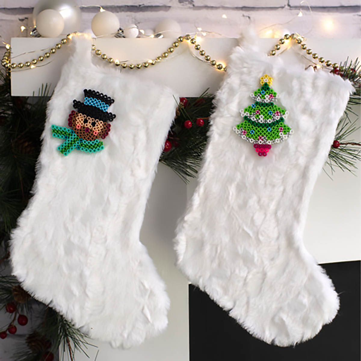 Create 13 holiday and winter motifs with this fun activity kit from Perler. Kit includes both solid color and striped fused beads. The shaped pegboards make it so easy to create these festive designs. Perfect for parties or playdates during the holiday season. Pegboards and ironing paper are reusable. For ages 6 and up.