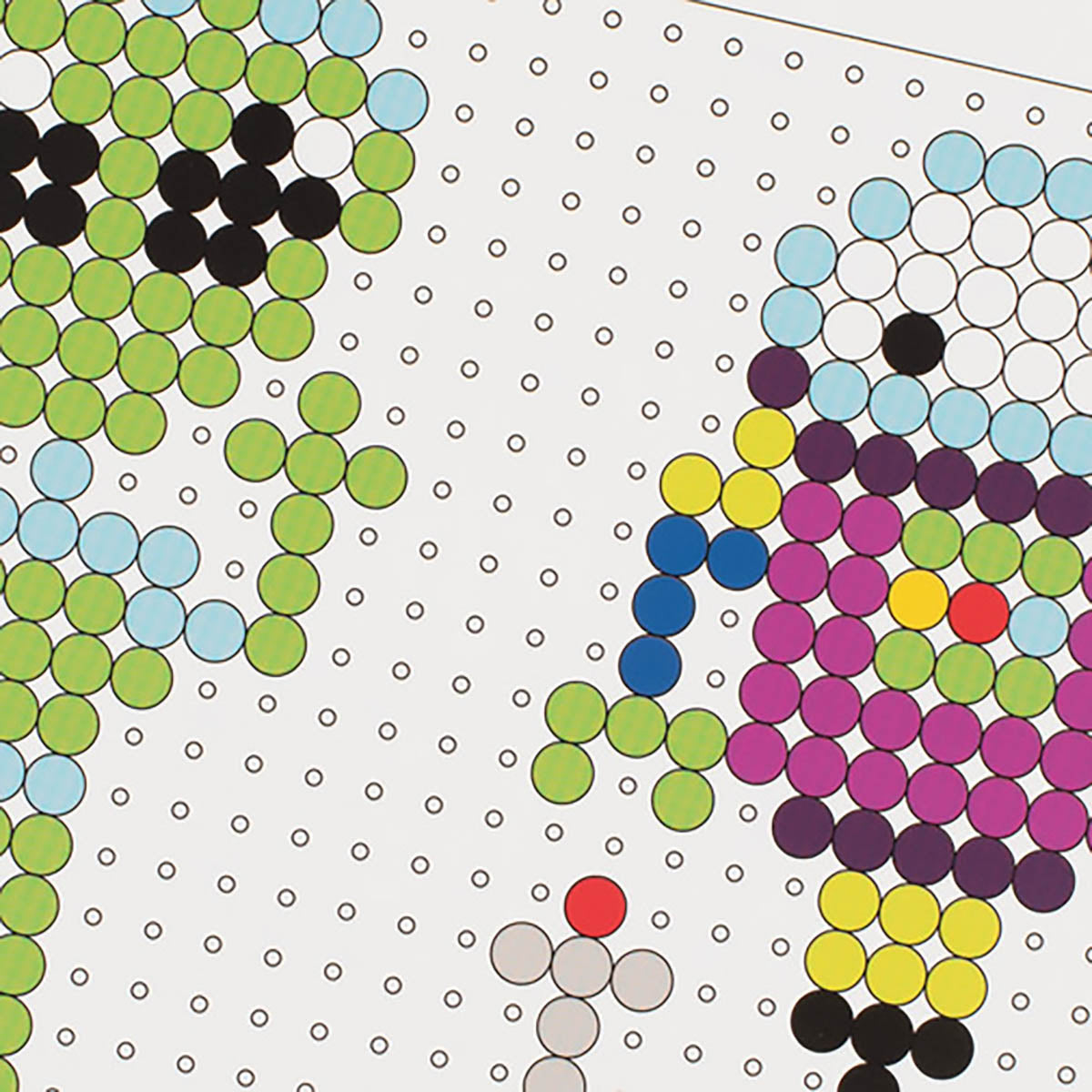 Pattern pad features 58 full-size patterns of outer space designs, such as rockets, aliens, astronauts, and planets. Each page provides a list of bead colors needed to create the patterns on that page. Patterns designed for use with Perler beads and large clear square pegboard. For ages 6 and up; ironing to be done by an adult only.