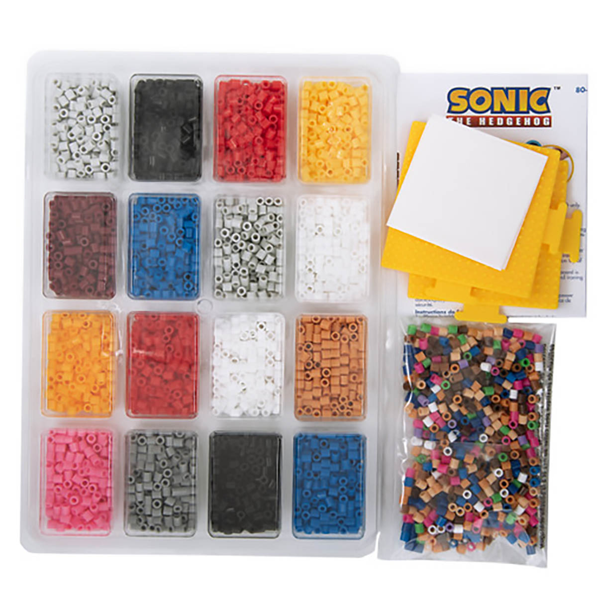Sonic speed! Use Perler fuse beads to create fan-favorite characters from Sega's Sonic the Hedgehog franchise, including Sonic, Tails, Knuckles, and Amy. Patterns included to make 14 projects in all! Perfect for gifting, this deluxe activity kit will provide hours of fuse bead fun. © SEGA. Kit contains 4500 beads, 2 pegboards, ironing paper, and pattern sheet with instructions. Designed for ages 6 and up; ironing to be done by an adult only.