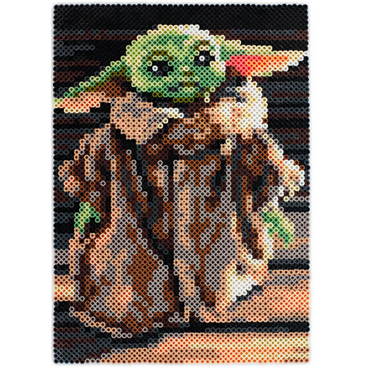 Create a detailed depiction of The Child from the Disney+ series, The Mandalorian, with this fuse bead kit. It makes a great gift for fans of all things Star Wars. Pegboard and ironing paper are reusable. For ages 12 and up. © & ™ Lucasfilm Ltd.