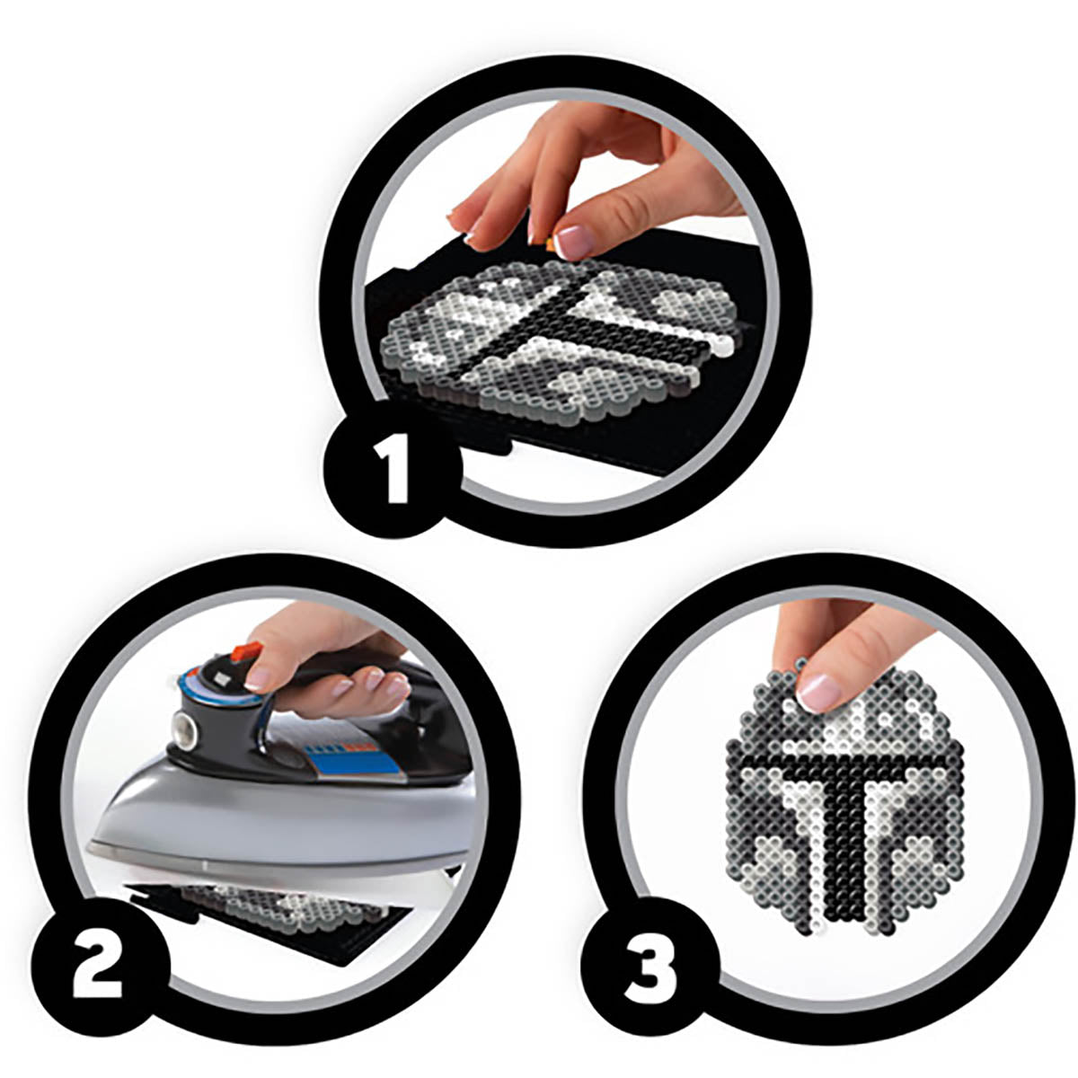 Create 14 different fuse bead designs featuring characters and icons from Star Wars The Mandalorian with this awesome activity kit. Patterns included to create Grogu, Boba Fett, R2-D2, and other fan favorites. © and TM Lucasfilm Ltd. Fused bead kit contains 4575 beads, 2 pegboards, pattern sheet with instructions, and ironing paper. Pegboards and ironing paper are reusable. Designed for ages 6 and up; ironing to be done by an adult only.