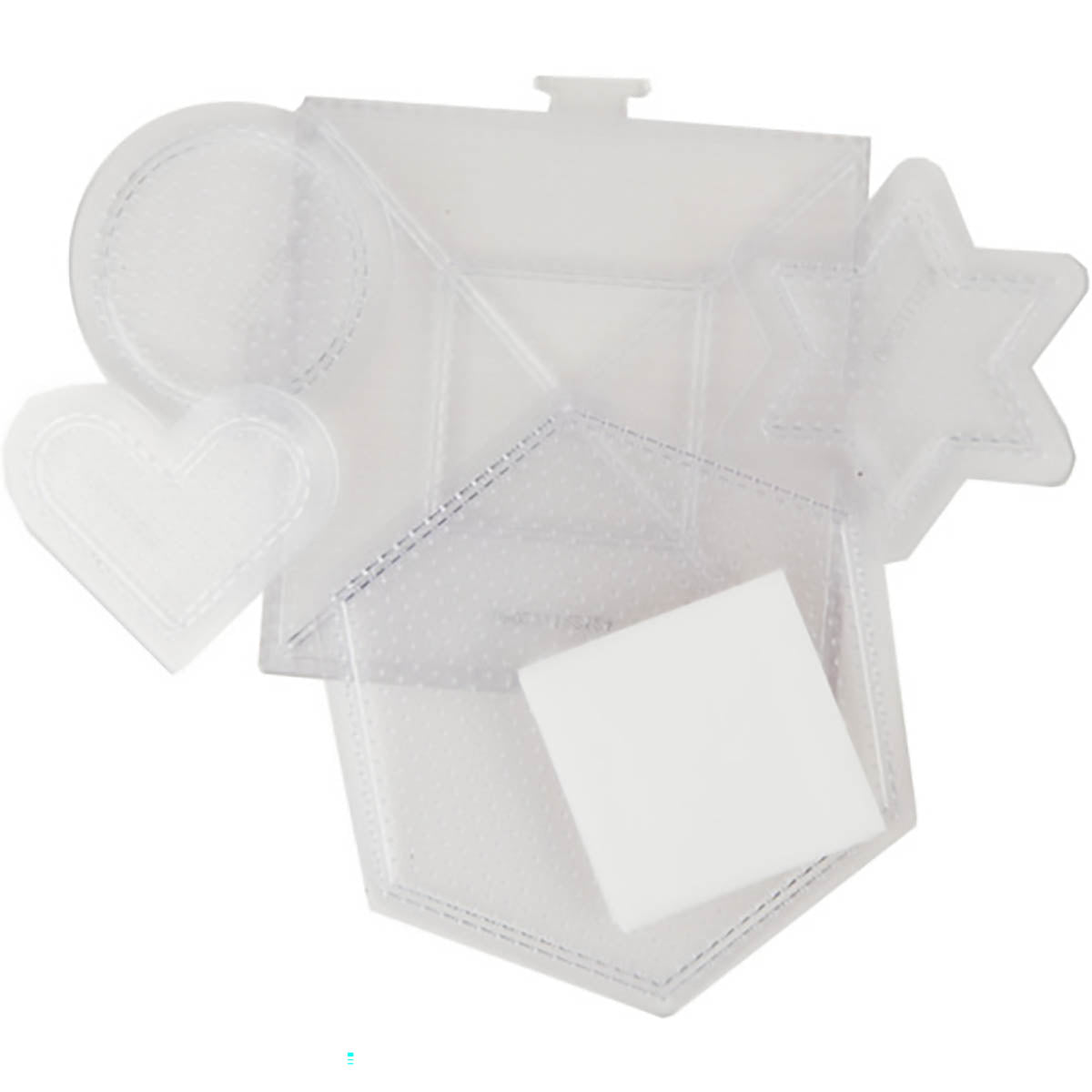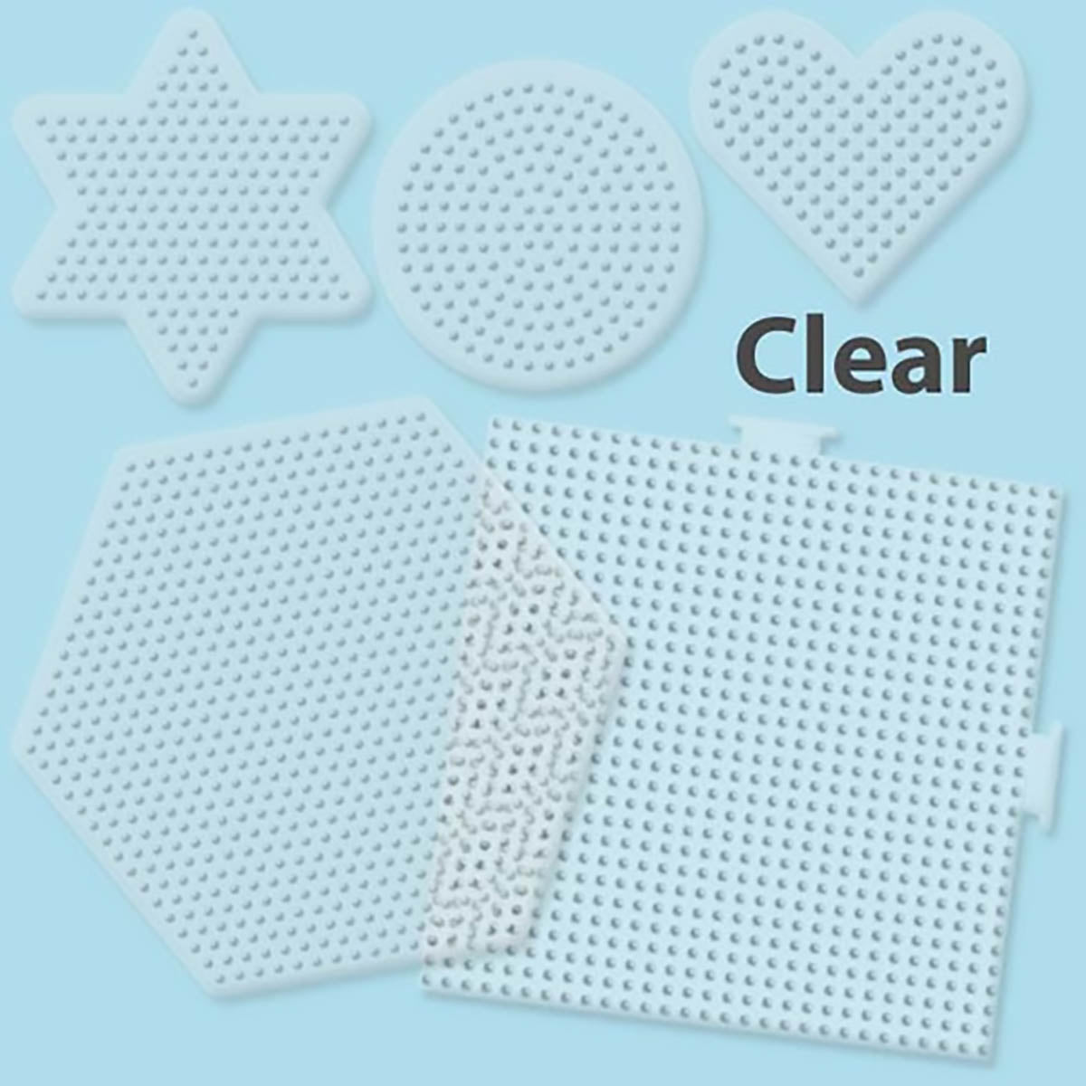 Our 5 Small & Large Basic Shapes Clear Pegboards are designed for use with Perler Beads. The advantage with clear pegboards is that you can lay them right over a pattern for easy placement of beads. For ages 6 and up. The Perler Small & Large Basic Shapes Clear Pegboard Set includes: